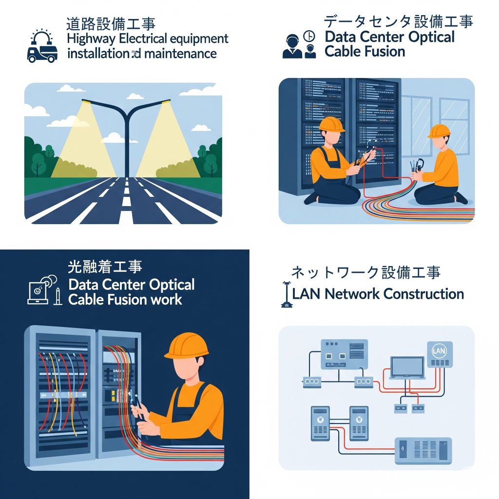 事 業 内 容 : 電気工事業 / 電気通信工事業 / 自動車販売事業